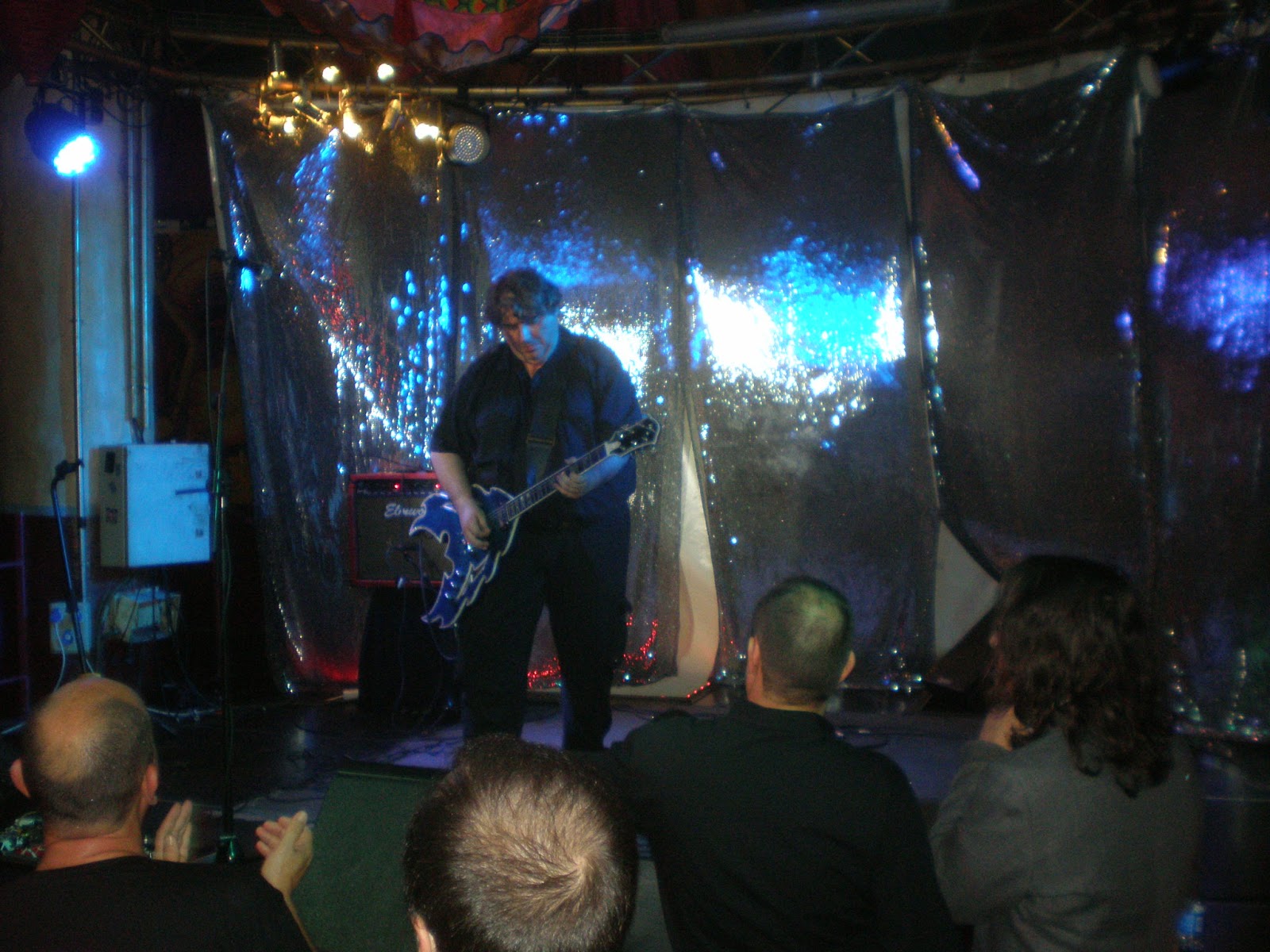 Tras hablar con los componentes de La Broma Negra y comprobar que de aquí a fin de año hay prevista alguna que otra actuación más, siempre una buena noticia, nos fuimos a tomar algo por los alrededores de la sala y entramos cuando estaba finalizando la actuación del 2º grupo de la noche, de nombre ITCN; pedimos disculpas por no poder informar aquí ni mínimamente de la actuación de Laureate Sky. Solamente vimos de ITCN las 2 últimas canciones y un bis que el grupo se marcó. Destacaban por unas bases rotundas, una potente voz de su vocalista y una estética bastante siniestra, debido principalmente a las máscaras de jugadores de hockey sobre hielo que llevaban 2 de sus componentes, al estilo de las de Jason de “Viernes 13”; luego mi novia les identificó en la sala cuando estaban tocando los grupos posteriores, y no tenían una pinta tan fiera sin ellas. Nos quedamos con ganas de ver más, pero la culpa fue nuestra de no haber previsto el asunto de la cena con una anterioridad mayor. ¿Aprecian ustedes las máscaras de los componentes de ITCN situados en los laterales del escenario?